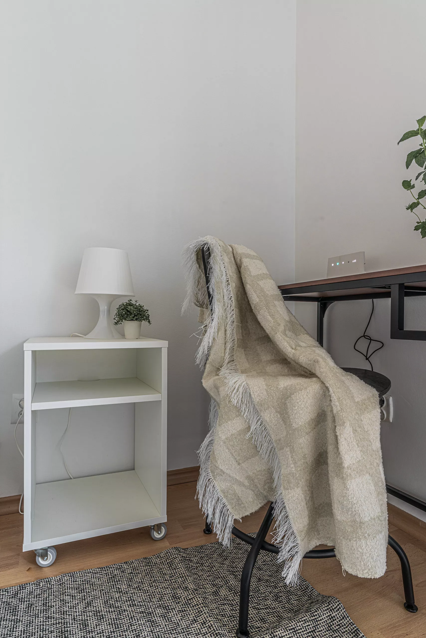 To idealna przestrzeń dla osób szukających komfortowego wnętrza, łączącego funkcje wypoczynkowe, sypialniane i do pracy w jednym pomieszczeniu.