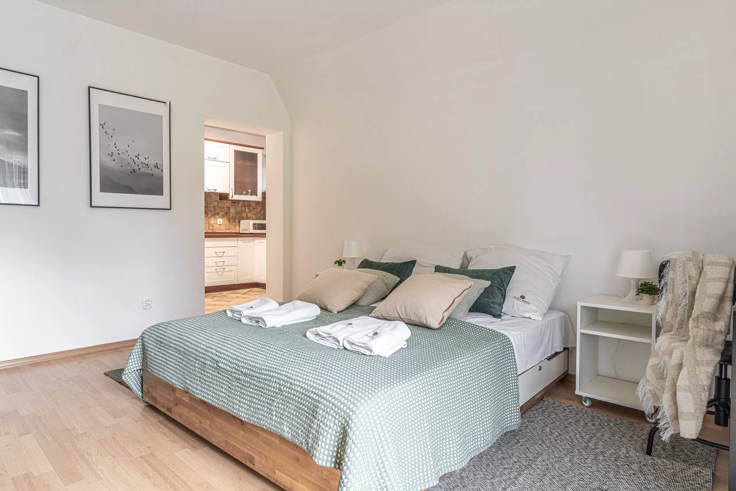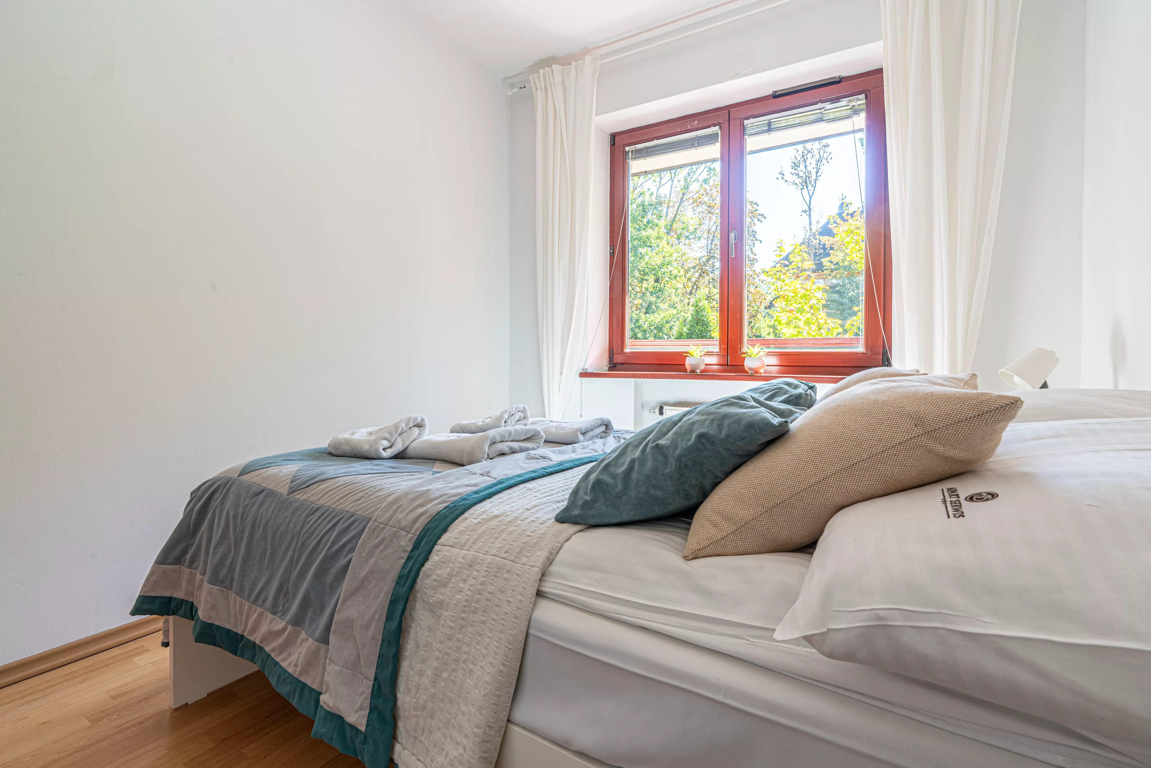 Apartament "Jaśkowa Izba" to nowoczesne i komfortowe miejsce w samym sercu Zakopanego, zaledwie kilka minut spacerem od Krupówek – głównego deptaka miasta, tętniącego życiem, pełnego sklepów, restauracji i atrakcji. Stylowo urządzony apartament o powierzchni 38 m² oferuje przytulną sypialnię, w której każdy detal został starannie dopracowany, aby zapewnić gościom maksymalny komfort i relaks.
